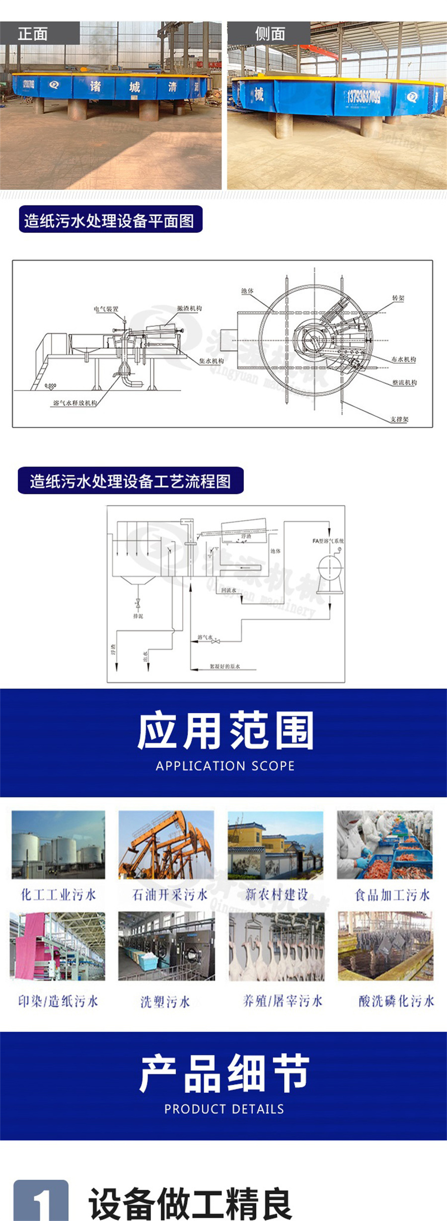 四、應(yīng)用范圍:該設(shè)備以更好的設(shè)計(jì),優(yōu)良的性能,廣泛應(yīng)用于石油、化工、鋼鐵、制革、電力、紡織、食品、釀造、市政等行業(yè)的污水處理系統(tǒng),是傳統(tǒng)氣浮設(shè)備的替代產(chǎn)品。
