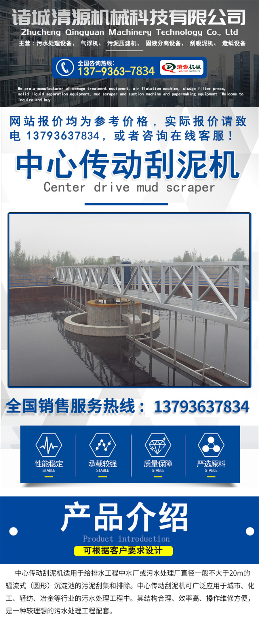 二、中心傳動刮泥機(jī)的產(chǎn)品特點