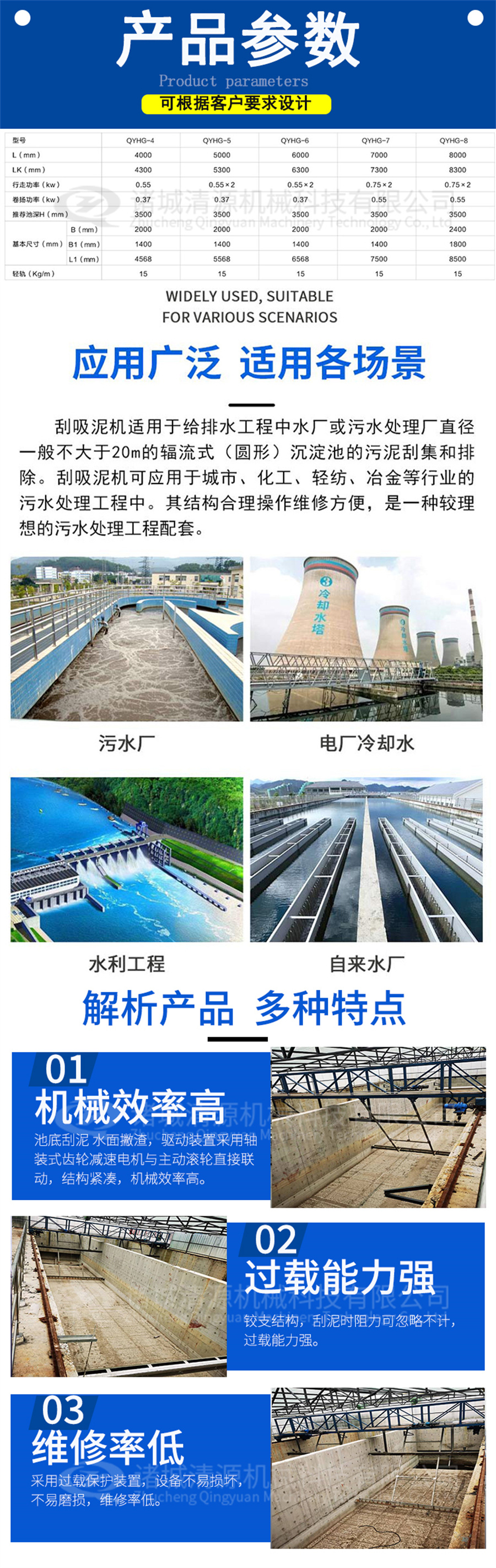 3.吸泥系統(tǒng)設(shè)有反沖洗裝置,以排除管路堵塞等意外。