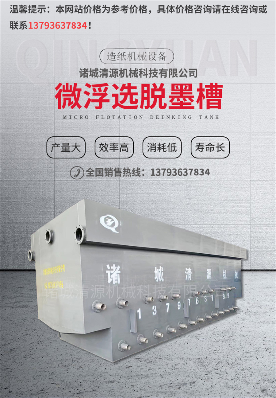 微浮選脫墨機(jī)具有浮選前后提高白度顯著:4-9ISO,纖維流失≤0.5%,動力消耗為傳統(tǒng)浮選的1/2或1/3。能夠去除油墨顆粒的尺寸范圍大,大約5-550微米。內(nèi)置式曝氣元件,有利于工藝氣體回路封閉。浮選脫墨機(jī)槽體間組合合理,液位控制簡單,運(yùn)行可靠,產(chǎn)量范圍大。